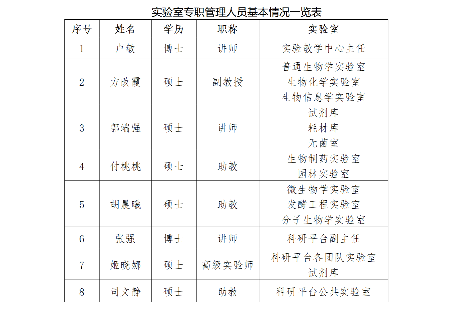BG大游集团官方网站实验教学中心现有实验室专职管理人员8人,负责教学实验室和科研平台实验室的日常管理工作,其中高级实验师1人,副教授1人,讲师3人,助教3人。