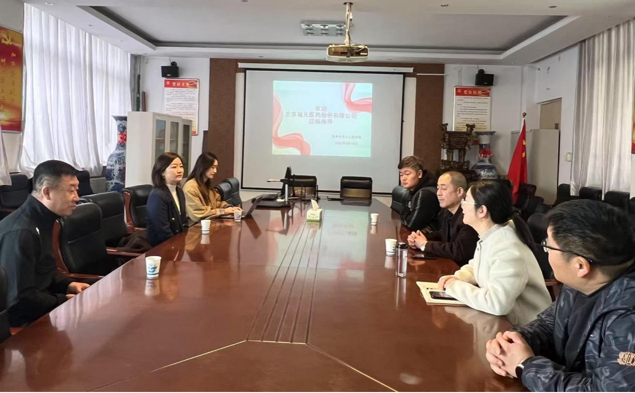 武二伟对北京福元医药股份有限公司一行的到来表示热烈欢迎。他介绍了公司的学科专业建设、科研团队建设、人才培养等方面的优势与取得的成果。他表示,期待双方以此次洽谈为契机,开启深入合作,加大交流力度,积极推进产教融合,进一步提高人才培养质量,实现合作共赢。王莲哲介绍了公司 2025 级毕业生目前的就业形势与实际需求,强调了进一步加强校企合作,在促进员工就业、拓展社会服务等方面的重要性与紧迫性。