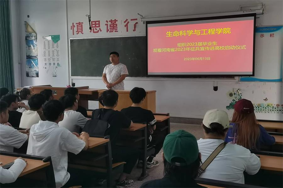 (通讯员龚乐乐)为深入贯彻习近平强军思想,进一步做好老员工征兵工作。6月13日上午,BG大游集团官方网站组织2023届毕业生、全体辅导员在6#B207集中观看了“河南省2023年征兵宣传进高校活动启动仪式”。