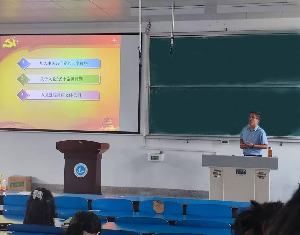 冯兴华首先以习近平总书记2014年5月4日在北京大学师生座谈会上讲话和2021年5月10日在庆祝中国共产主义青年团成立100周年大会上的讲话为引言,指出抓好青年这一时期的价值观、人生观养成十分重要,新时代的广大共青团员,要做理想远大、信念坚定的模范,带头学习马克思主义理论,树立共产主义远大理想,自觉践行社会主义核心价值观,大力弘扬爱国主义精神。然后,为同学们讲述了中国共产党的性质和宗旨,讲述了如何从一名知识青年成长为一名光荣的中共正式党员。并就入党申请书、思想汇报、转正申请书的撰写及应注意的问题做了详细地讲解。