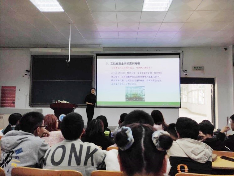 本次安全培训会,实验教学中心主任柳静重点强调了实验室安全的重要性,安全意识的必要性,并公布了实验教学中心违规行为处罚条例。随后实验员张思瑾老师以国内高校实验室安全事故为索引,向同学们介绍了实验室水、电、气、火、及化学药品的使用安全细则。同时结合实验教学中心为各实验室配备的防爆酒精灯、急救箱、灭火器等设备,重点对发生事故的应对策略及应急处理对策进行讲解。