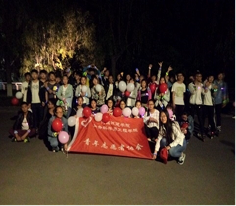 志愿者带领着各公司参与人员安全有序的到达此次活动的起点,并向他们发放胸章、荧光棒、荧光气球等荧光用具。活动中,参与此次活动的同学们于活动开始前就热情高涨,蓄势待发,活动正式开始,全体参与人员进行环湖荧光夜跑,同学们在跑步的同时不停地挥舞着手中的荧光棒。一支支荧光棒汇聚成一条璀璨绚丽的彩色光龙,仿佛要以这光芒照亮一切。本次活动还吸引了广大市民围观,志愿者们为市民讲解此次活动所宣扬的"节约资源,简约生活"的活动主题,提倡市民们绿色简约生活。此次活动收效显著,意义非凡。