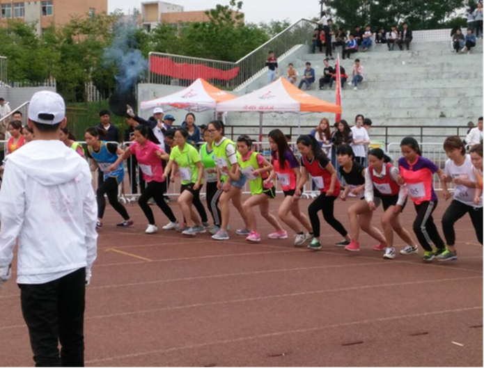 (通讯员:闫林源)2017年4月20日15点半,女子1500米比赛在足球场正式开始,参赛人员陆续到场,准备就绪。