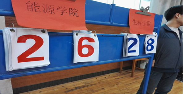 在这场比赛中,生科队伍面对的是上季冠军能源公司的队伍。但比赛时却没有丝毫的畏惧,在先被拿下一局的情况下,却保持了良好的心态,及时调整战术,队员稳定发挥。在双方比分紧紧咬住的时候,一记漂亮的扣杀打出了气势,随后打破僵局,以28:26的比分扳回第二局。第三局队员们越战越勇,前期被拉下7分,激发了队员们不屈的精神,连续扳回来数球,在对方还有两球胜利之时,生科队伍触底反弹,扣杀,拦截,队员们一个个漂亮的动作打懵了能源队伍,在气势如虹的生科队员,一鼓作气拿下了比赛。生科队员们在先输一局的劣势下却让一追二,以胜利者的姿态夺得了季军!