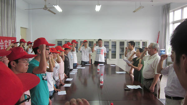 首先,李涛飞老师向队员们传达了公司关于举办2012年暑期“三下乡”社会实践活动的具体通知,宣读了生物工程系暑期社会实践领导小组名单以及2012年暑期社会实践团队名单--赴舞钢市暑期社会实践团、赴新城区暑期社会实践团和赴焦店镇暑期社会实践团,并和队员们签订了暑期社会实践活动安全责任书。