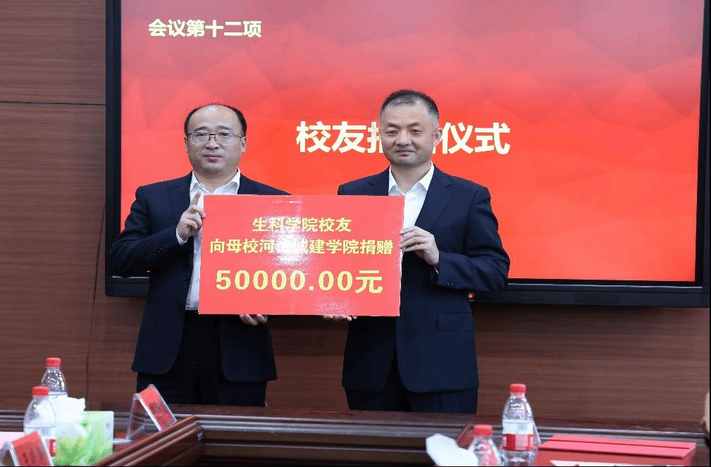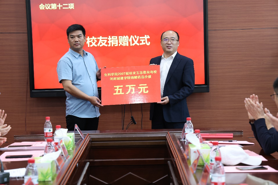 会后,平方剑代表员工向母校捐赠五万元资金,用于BG大游集团官方网站事业发展;王志勇员工向母校捐赠价值五万元的药品。闫继涛代表公司接受了捐赠。