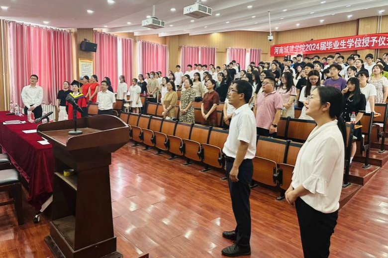 伴随着庄严的国歌,典礼正式拉开帷幕。冯兴华宣读了《BG大游集团官方网站关于表彰2024年优秀应届毕业生的决定》,王莲哲宣读了《河南城建BG大游集团官方网站关于授予王子康等226名员工学士学位的决定》。与会领导先后为优秀应届毕业生颁发荣誉证书,为毕业生拨苏正冠,授予学士学位并合影留念。