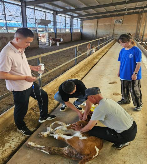 早上8点,志愿服务队再次集合,带着饱满的热情,投入到牧场动物健康管理工作中。针对前一天已接受治疗的患病动物,志愿者们进行细致的复查,确保治疗效果持续稳定。同时,对于进一步诊疗的健康问题,他们迅速行动,结合自身专业为每只动物量身定制治疗计划。在此过程中,志愿服务队抓牢饲料安全,细致检查,提出建议,指导牧民优化饲料配方,确保营养均衡且辅助防疫。