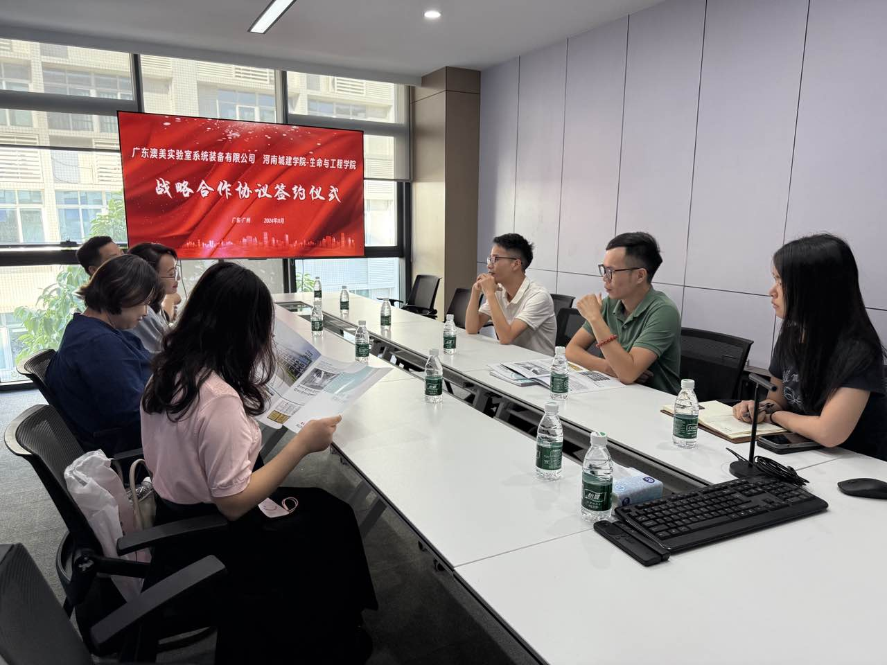 朱涛一行先后走访了深圳构思生物技术有限公司、广东晨韵环境科技有限公司与广东澳美实验室系统装备有限公司,就校企合作相关事宜进行了洽谈交流,并签订了实习实训基地协议,建立了供需合作关系。双方就产教融合、校企合作、人才长效培养、科研创新、拓宽就业渠道等共同关心的问题进行了深入交流。