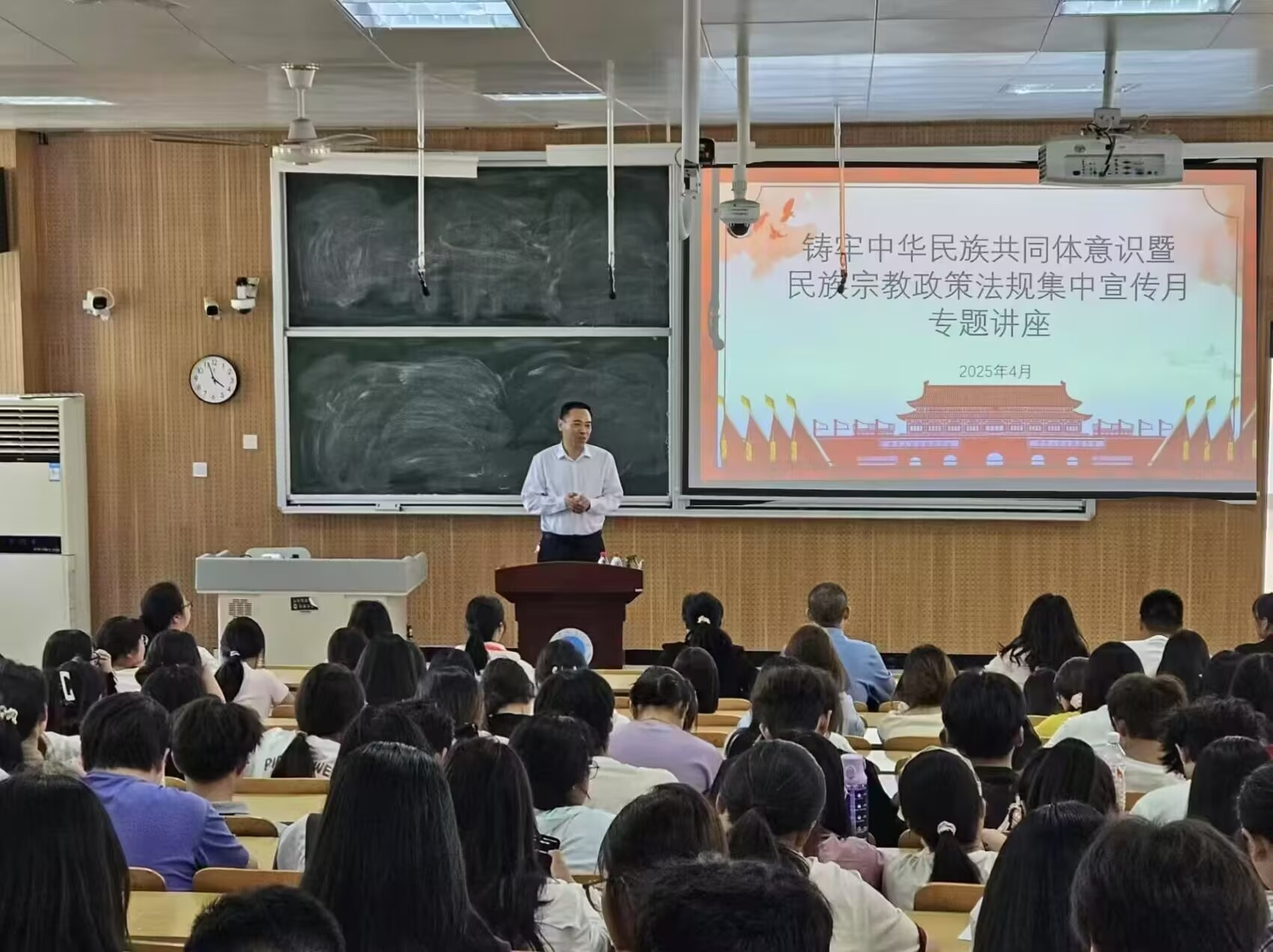 (通讯员 李赫)为深入学习宣传党的二十大和二十届三中全会精神,全面贯彻落实习近平总书记关于加强和改进民族工作的重要思想、关于宗教工作重要论述,4月28日,BG大游集团官方网站邀请公司党委统战部部长张守义为公司师生作党的宗教政策专题辅导。公司党政领导班子成员、全体辅导员,部分任课老师、员工党员、员工团干、入团积极分子等160余人参加学习。