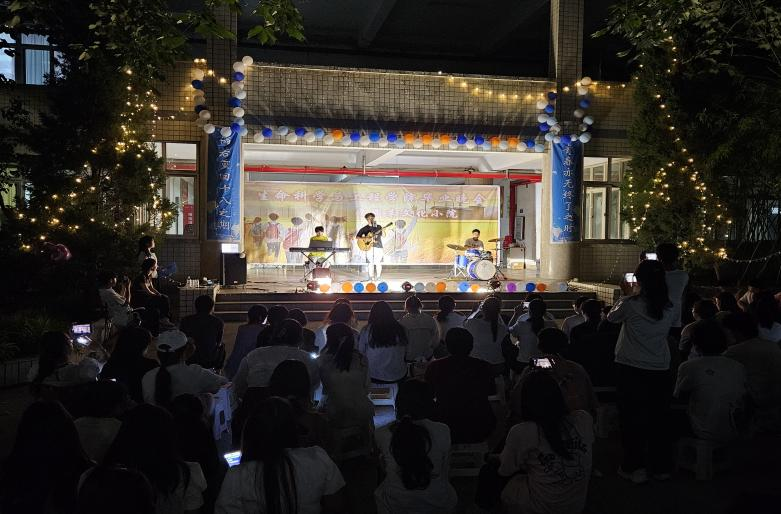 当晚,随着经典老歌的动人旋律晚会的序幕缓缓拉开。活动中,充满青春活力的诗词朗诵为毕业生的未来描绘出美好憧憬,曼妙优美的古典舞蹈展现了古风文化的独特魅力。毕业生自发组建的乐队在现场献上了多首精彩歌曲,为观众带来了一场震撼的视听盛宴。晚会最后毕业生代表一首寓意祝福与离别的歌曲为本次活动画上圆满句号。