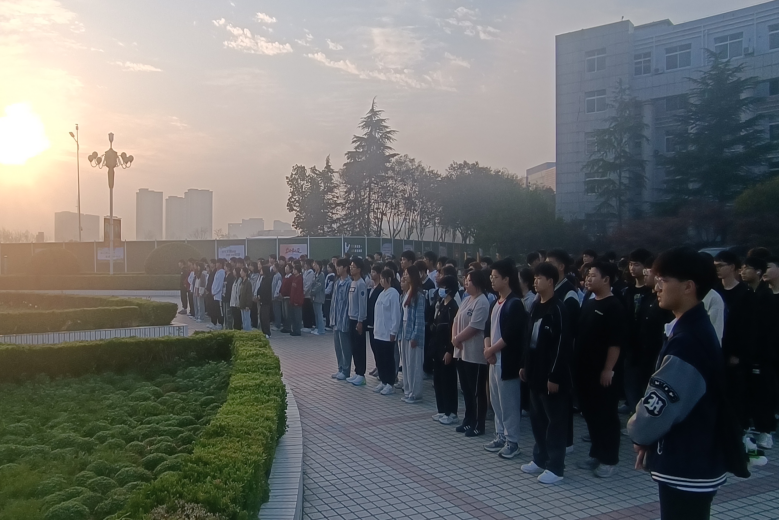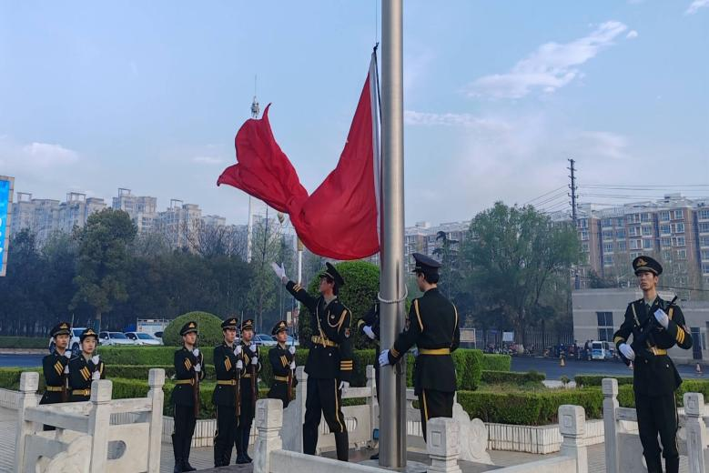 清晨的校园静谧而庄严,师生们精神抖擞,整齐列队站立。国旗护卫队迈着铿锵有力的步伐,缓缓走向升旗台。当庄严的国歌声响起,五星红旗在晨风中冉冉升起。全体师生肃立,面对国旗行注目礼。
