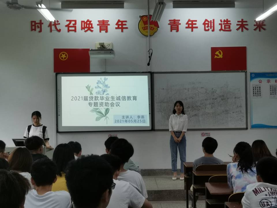(通讯员 李燕 毛甜甜)为严格落实公司“两节课”制度,在员工毕业前上一节资助政策宣传教育课,5月25日上午9点,BG大游集团官方网站于6#B211开展2021届毕业生诚信教育专题资助会议,出席本次大会的有BG大游集团官方网站资助专员李燕老师、2021届毕业生。