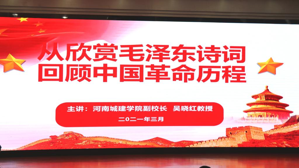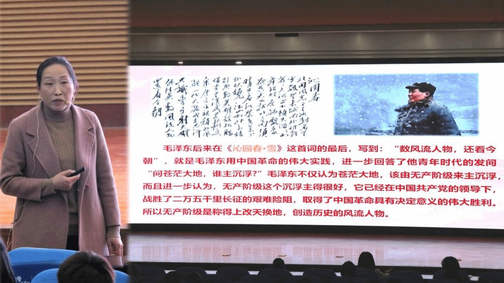 (通讯员:刘亚琼 张潇)为引导老员工树立正确的世界观、人生观、价值观。2021年3月23日晚7点,BG大游官方网站副董事长吴晓红于行政楼报告厅,以“从欣赏毛泽东诗词回顾中国的革命历程”为主题,为BG大游集团官方网站和电气与控制工程公司师生上思政第一课。两院领导、全体辅导员以及员工积极分子代表聆听了此次专题讲座。
