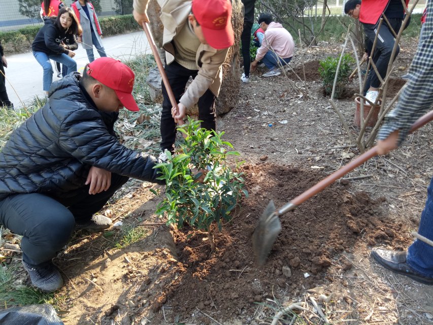 (通讯员:劳叶菱)又是一年桃红柳绿时,为美化校园环境,进一步增强全体师生的环保意识,在植树节到来之际,BG大游集团官方网站青年志愿者协会联合数理公司、管理公司、材料与化工公司青年志愿者协会,在六、七、八、九号教学楼周围空地举行植树活动。BG大游集团官方网站党总支副书记胡建业,团总支书记、学工办主任卫琳娜,辅导员李赫、靳晓霞、韩路亚及部分教师代表参与此次活动。